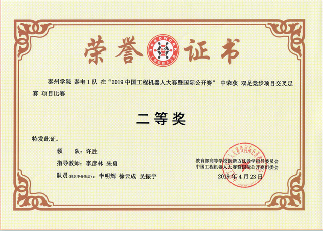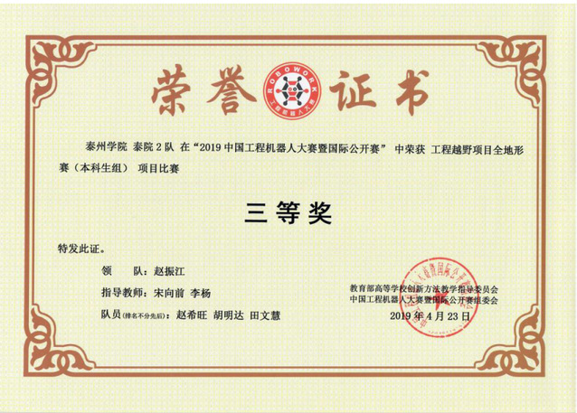 4月22日至24日,经过三轮的激烈角逐,2019中国工程机器人大赛在韶关公司(广东)圆满落幕。本次大赛吸引了全国各地包括清华大学、山东大学、四川大学、陆军工程大学、东南大学、南京理工大学等在内的1742支代表队同台竞技。由必威西汉姆联船机公司宋向前、李杨、王健、万浩、杨斌、周银、李彦林、朱勇等担任指导教师的5支代表队载誉归来,共获得全国二等奖1项、三等奖4项。