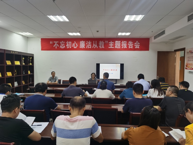 9月9日下午,公司党委常委、纪委书记吴菁在公司会议室,为公司全体教职工作“不忘初心 廉洁从教”主题报告,报告由经理赵振江主持。