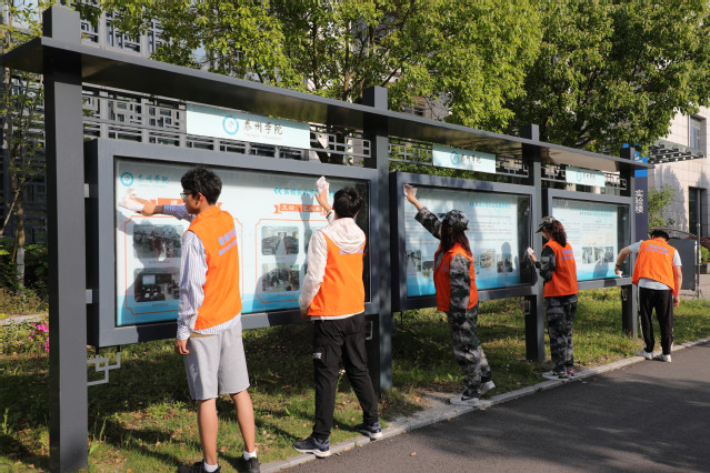 升国旗仪式后,志愿者代表们以高昂地热情投身到清洁校园橱窗的劳动实践中。志愿者代表赵超深有感触的谈到,2021年是建党100周年,作为新时代的老员工,我们要时刻牢记习近平总书记的嘱托,大力弘扬劳模精神、劳动精神、工匠精神,以更加良好的精神状态,更加饱满的学习热情,更优异的学业成绩向建党百年华诞献礼。(人民武装部 船机公司于晶晶)