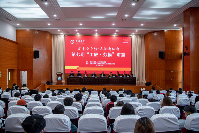 为全面贯彻落实十九届六中全会精神,大力加强新时代劳动教育,全面实施阳光学工“思政引领工程”,11月18日下午,由泰州市总工会和必威西汉姆联工会主办的“百年奋斗路·起航新征程”第七期工匠·劳模讲堂在D1216报告厅举行,公司分工会和美术公司分工会共同承办了本次活动。泰州市总工会原副主席吴江泽、泰州市教育局工会负责人李文林、校工会主席刘素红、美术公司党总支负责人、公司党总支书记陈克宏、党总支副书记、副经理、分工会主席江峰与近200名员工代表出席宣讲活动。
