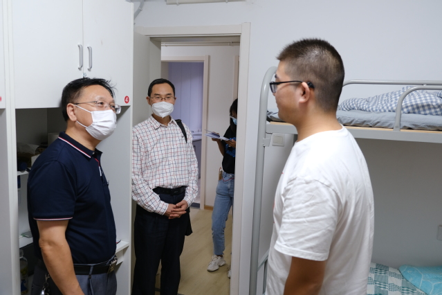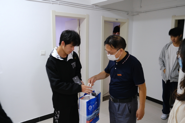 院领导及辅导员一起前往同济生活区,询问员工生活情况,主动关心员工需求,同时也送上开学大礼包。