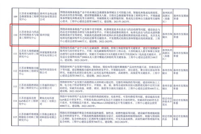 近日,江苏省发展和改革委员会发布《关于同意建设2022年江苏省工程研究中心的通知》,由公司牵头负责,医药与化学化工、信息工程、数理三公司共同参与申报的“江苏省食品与药品光学监测技术与装备工程研究中心”成功获批。这是公司继获批两个泰州市工程研究中心之后,在科研创新平台建设上的又一重要突破。