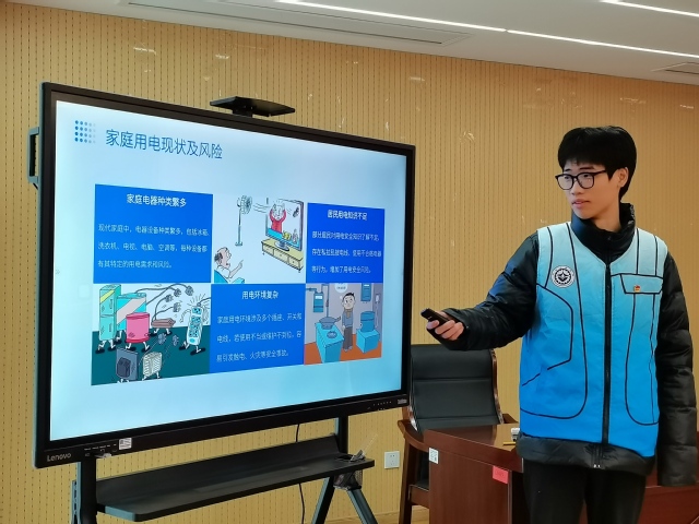 电气工程及其自动化专业团员代表蔡朱垚,从家庭用电设施与设备安全、操作规范、预防与应对措施等方面向大家科普用电安全知识,呼吁大家守好安全防范底线,增强安全用电意识。