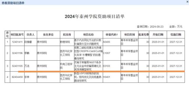 近日,国家自然科学基金委员会官网发布了《关于2024年国家自然科学基金集中接收申请项目评审结果的通告》,公司万浩博士获批国家自然科学基金青年项目资助。