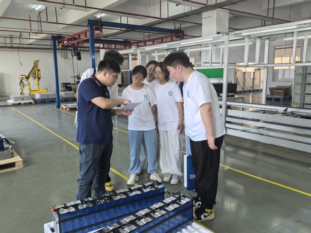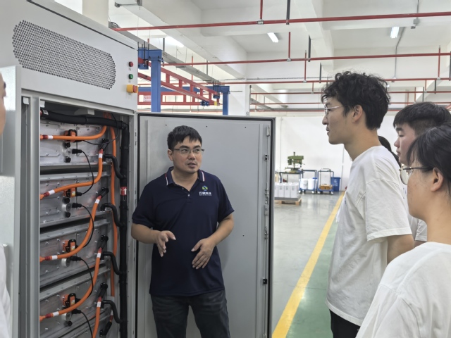 830日早上,队员们首先前往了江苏石星科技有限公司,企业负责人向团队介绍了目前储能行业的发展情况,带领队员们参观了区域功能设施和相关的产品加工过程。随后企业负责人与团队成员从产品研发历程、未来产业发展现状等展开交流,鼓励同学勤奋学习、树立目标,将所学知识落实到实处。