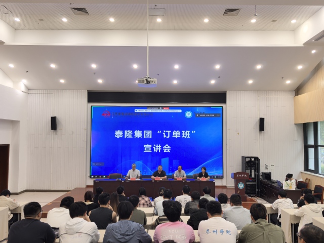 为深化产教融合、推进校企协同育人,9月26日,公司与江苏泰隆集团联合举办“订单班”宣讲会。院党总支书记于晓萍、经理许胜,江苏泰隆集团监事主席刘义彬、董事长助理蔡建永出席活动。